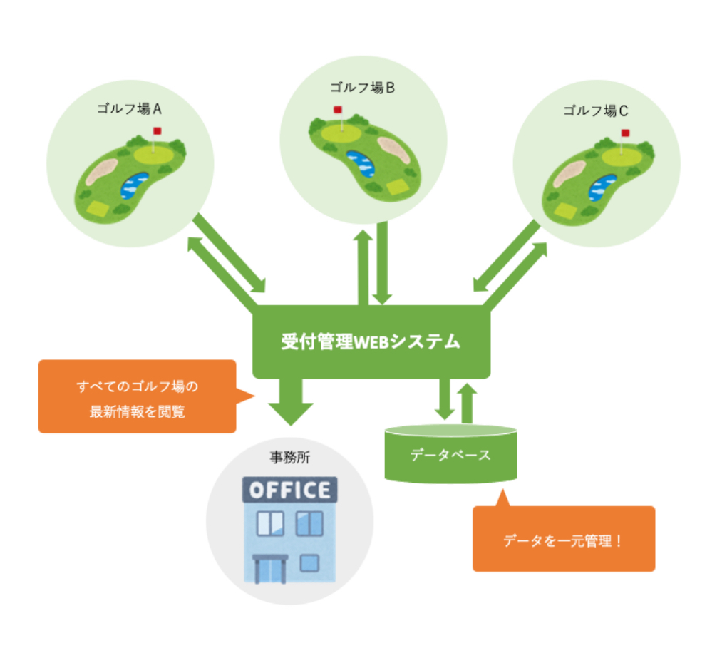 管理者はすべてのゴルフ場の情報、各ゴルフ場は自分のゴルフ場の情報み閲覧可能など、 ログイン拠点や権限によって閲覧・編集・出力できる範囲を指定することもできます。
