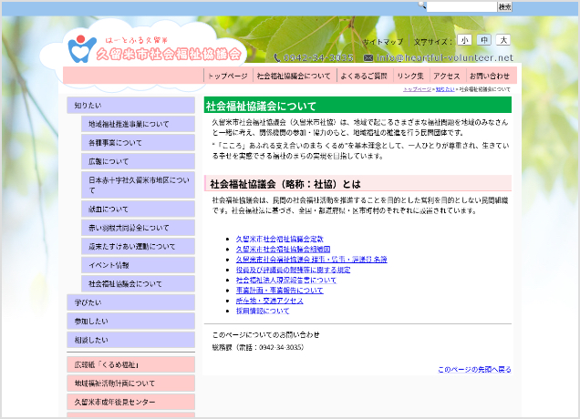 久留米市社会福祉協議会(久留米市社協)は、地域で起こるさまざまな福祉問題を地域のみなさんと一緒に考え、関係機関の参加・協力のもと、地域福祉の推進を行う民間団体です。“「こころ」あふれる支え合いのまち くるめ”を基本理念として、一人ひとりが尊重され、生きている幸せを実感できる福祉のまちの実現を目指しています。